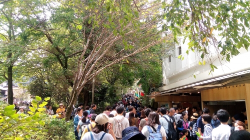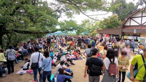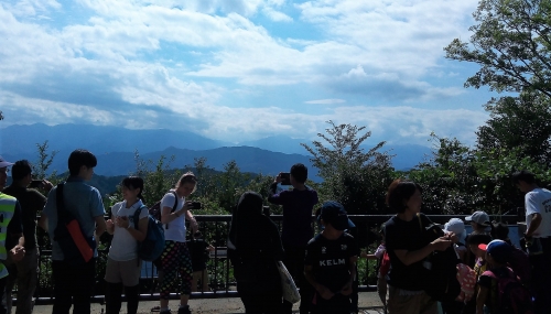 「高尾山口」駅ですでに改札を抜けるまでに渋滞し、駅前の通りも人でいっぱい。登山中も道が狭いところでは、何度か「上り」と「下り」のすれ違いのため行列ができました。ようやく着いた山頂でも、お弁当を食べるスペースを探すのにも一苦労…。11時ちょっと前から上り始め、12時半に登頂するスケジュールでは、やはり遅すぎたようです。