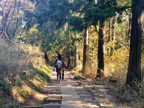 途中にある一丁平園地展望デッキを過ぎたら、高尾山までは残すところ1.6km!高尾山山頂に近づくにつれて登山者も増えていき、活気が感じられてきます。