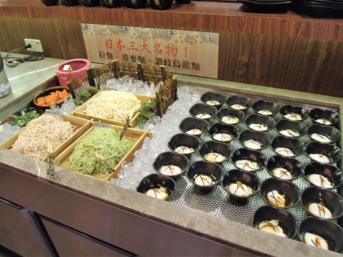 バイキングコーナーには白ご飯やカレー、サラダやフルーツなど盛りだくさん。台湾はフルーツが豊富なことでも知られていますが、季節のフルーツが食べ放題なのはうれしいですね。そしてなんと日本のラーメンやソバ、讃岐うどんや温泉たまごまで置かれています。日本の味と同じかどうか試してみるのも楽しそうですね。