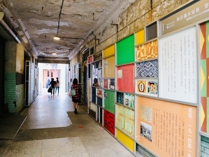 敷地内にはどこを切り取っても絵になるようなフォトスポットがたくさん。トンネルのようなこの空間では華山の100年の歴史等が紹介されています。