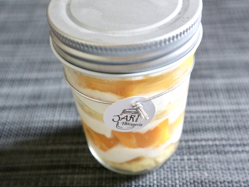 店舗に一歩足を踏み入れると、ショーケースにたくさんの瓶入りスイーツが並んでいる様子を目にします。桃やレモンなどの季節のフルーツが入ったものもあれば、ティラミスやマカロンなどもあり種類は豊富。どれも色鮮やかでとってもかわいいです。