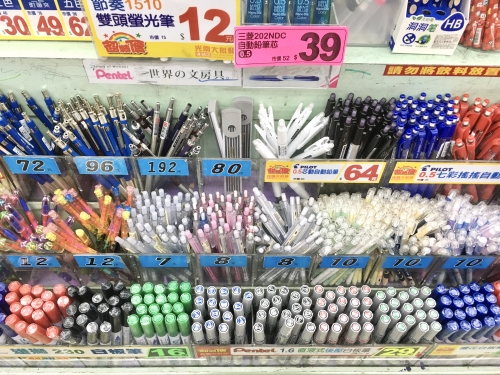 ボールペンやカラーペンなどのペン類も豊富です。中には「こんなに安くていいの!?」とびっくりしてしまうような格安商品も。いろいろな商品を一つずつ眺めていると、あっという間に時間が経ってしまいそうですね。