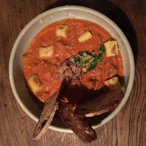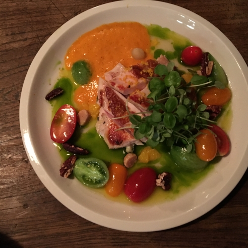 前菜2品、メイン2品、ビール2杯、炭酸水1瓶で、約8000円でした。
