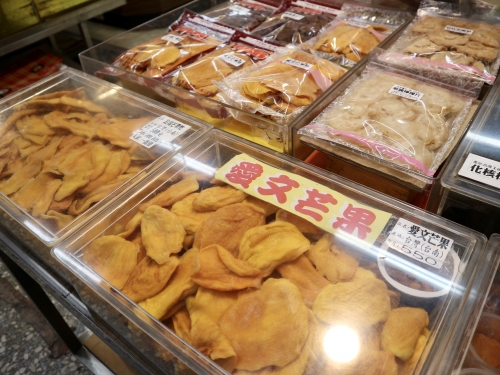 ドライフルーツやお茶、カラスミや雑貨など、お土産にぴったりな商品を販売しているお店がたくさん並んでいます。雰囲気のあるカフェやスイーツ店もあり、散策が楽しいエリアです。