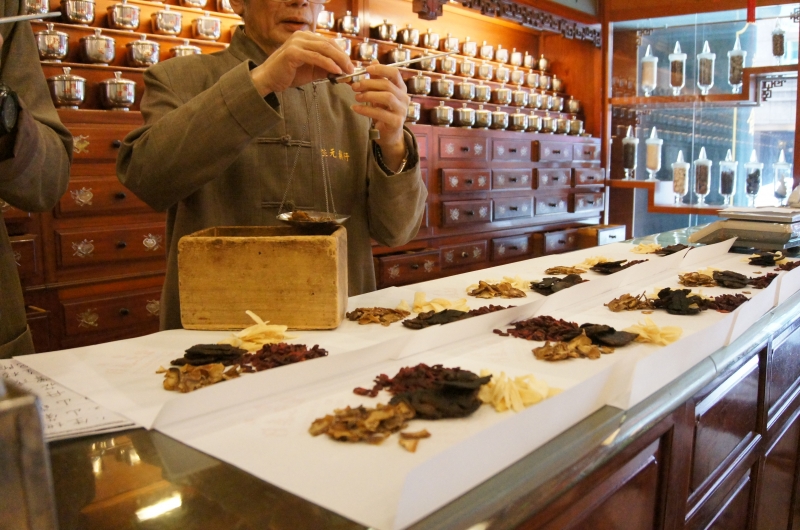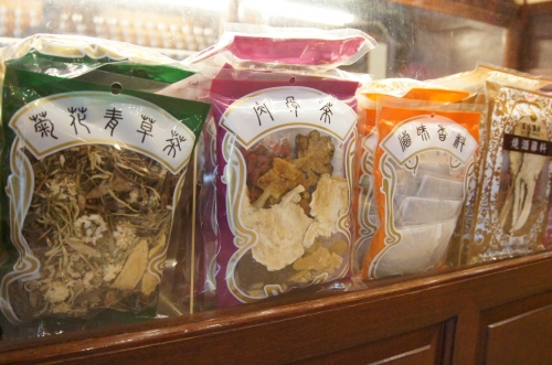 漢方薬局ということで、すでにパッケージされた美肌効果や冷え症改善のに効能が期待できる漢方などが陳列されていました。これを目当てに買い物に来る地元の方も多くいるそうです。
