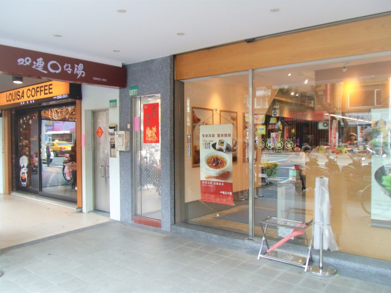 こちらが店舗の入り口の様子です。大通りに沿って歩いていけばすぐに見つけることができますよ。お店の隣には台湾で人気のカフェチェーン店「LOUISA COFFEE」があります。
