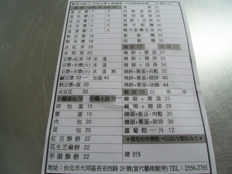 台湾朝ごはんや夜食は豆乳店で!台北MRT中山駅近く【四海豆漿大王】