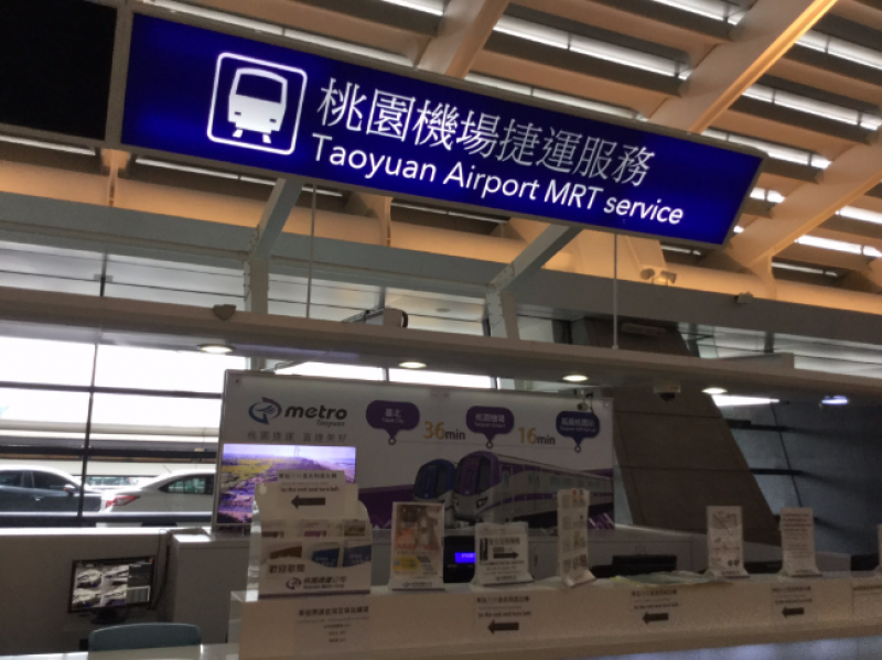 桃園空港に到着後、到着ゲートを出たら、まず前方左あたりに見えるこの看板の案内所を探しましょう。桃園空港MRTの乗り場までの詳しい場所を案内してくれます。