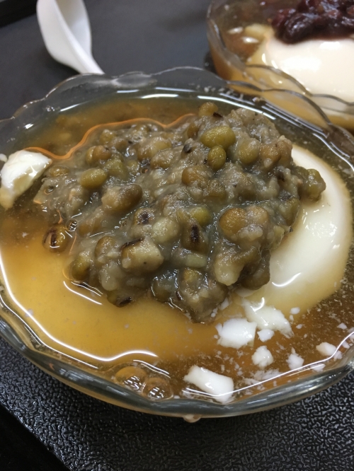 二つ目(写真右)は、緑豆トッピング。小豆よりも小粒なお豆がたっぷりかけられています。より甘さが控えめで、ヘルシー感がありました。