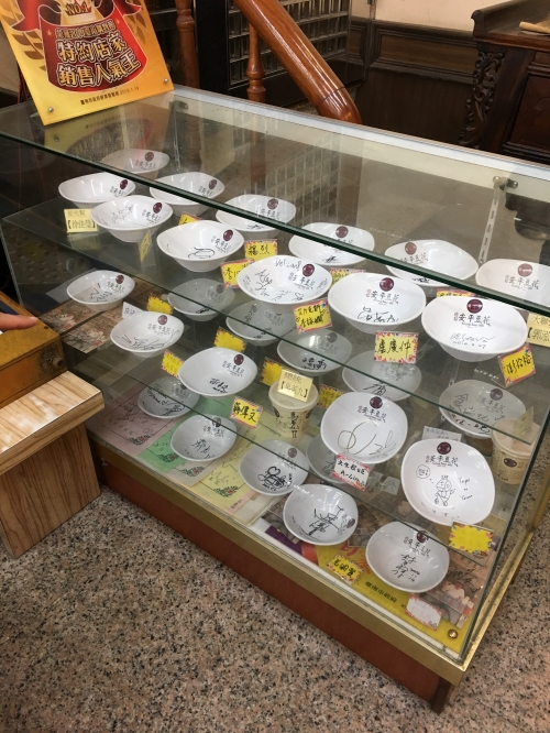 有名人の方も多く訪問されているようで、サインが書かれたお皿が展示されていました(写真右)。