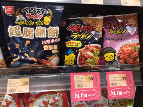 日本でお馴染みのベビースターラーメンですが、台湾にも工場があり、台湾バージョンが売られています。日本では見かけないパッケージと味の数々。