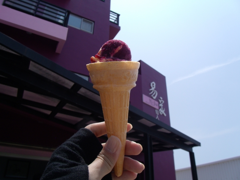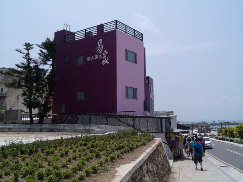 「澎湖跨海大橋」入り口付近からふと横を見渡すと、紫色のひときわ目立つ大きな建物を目にすることでしょう。ここが、サボテンアイス(仙人掌冰)で有名なお店「易家(イージア)」です。
