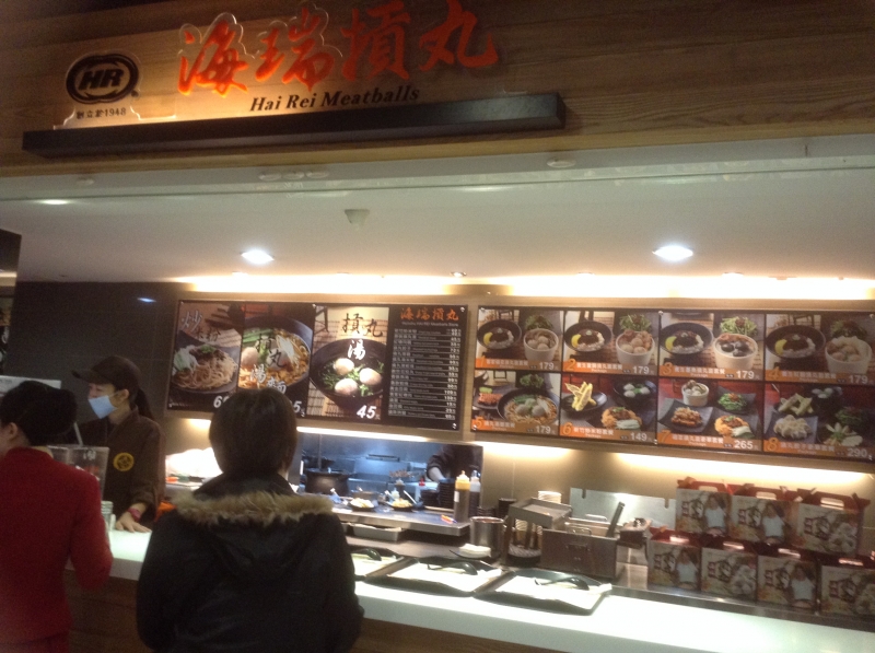 フードコート内にあり、新竹名物を味わえる「海瑞摃丸」は、空港で最後に台湾らしいものを食べて帰りたいという時にぴったり。店の前に掲示されているメニュー写真を眺めてみると、「炒米粉(焼きビーフン)」や「摃丸湯麺(肉団子スープ麺)」、「摃丸湯(肉団子スープ)」と、おいしそうなメニューが並んでいます。