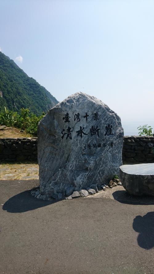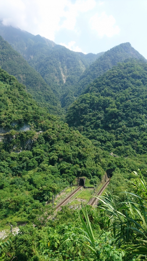 駐車場から徒歩10分ほどで海岸の近くの展望台と記念碑にたどり着きます。青い海とそそり立つ崖が美しいです。タイミングが合えば北廻線(花蓮から台北へと至る鉄道)の列車がトンネルを抜けて走るところを上から眺めることもできます。