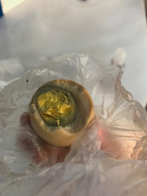 空港に着いた時には残り14元(¥50)が残っていたので、台湾のコンビニには必ずある煮卵を空港のコンビニにて10元(¥36)で購入しましたよ。