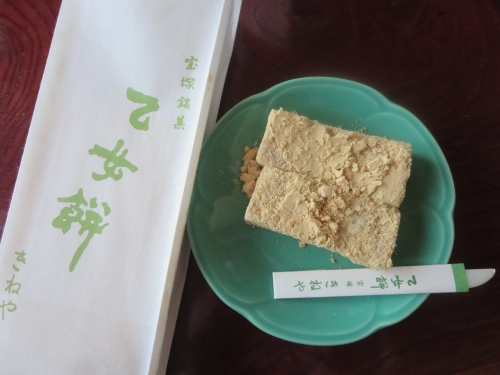 乙女の都である宝塚で作られている「乙女餅」。もち米・砂糖・きび糖を合わせたものを蒸し、たっぷりのきな粉がまぶしてあります。素朴でありながら上品な味で、もっちりとした歯ごたえがたまりません♡