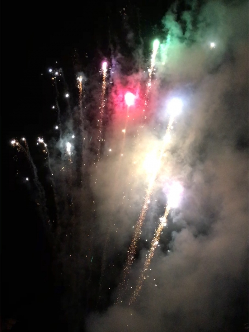 手筒花火の他にも、至近距離での打ち上げ花火や水上を走る仕掛け花火など、様々な花火が夏の夜を彩ります。