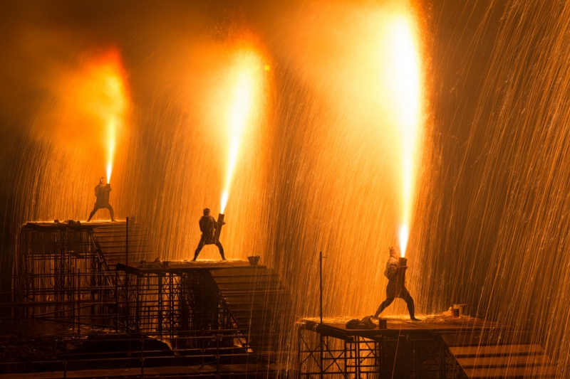 火花を浴びながら竹筒を抱える勇姿は、まさに圧巻!!
