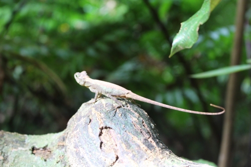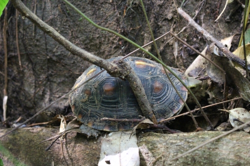 トレッキングの最中、足元でごそごそと動く気配。見ると石垣島・西表島にしか生息しないとされる「セマルハコガメ」が!他にもトカゲやチョウ、トンボなどの生き物たちがたくさん見られ、知識豊富なガイドさんに質問しっぱなしです。