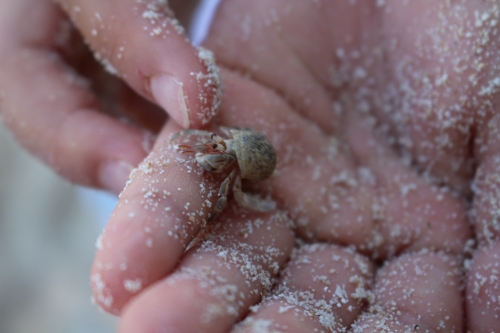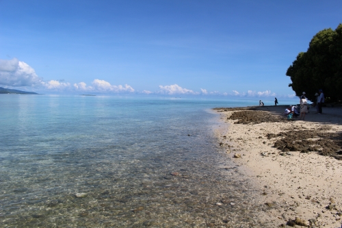 お昼前のフェリー出航の時間まで、もうひと遊びするなら、宿から自転車で15分ほどの「カイジ浜」はいかがでしょう。こちらのビーチは遊泳禁止ですが、“星砂”が取れることで有名。星砂を探したり、ヤドカリを捕まえたり、小一時間ほどのんびり過ごします。
