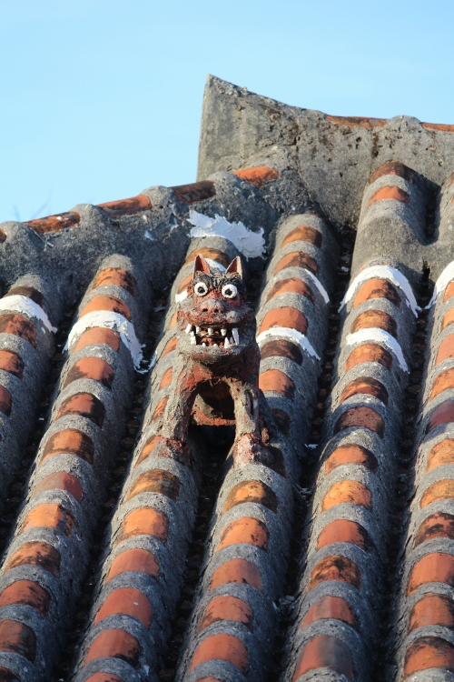 沖縄らしい写真といえば、屋根の上の守り神“シーサー”が欠かせません。家々によって顔立ちが異なるシーサーを、ゆっくり見て回りましょう。それぞれに個性が魅力的なシーサーたち、見飽きることはありません。