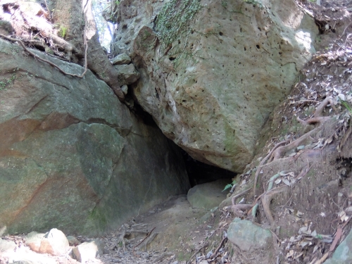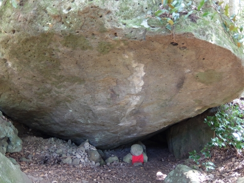 歩き始めて10分ほどで2つの巨岩が現れます。藤原秀衡の妻が子供を産んだと伝わる乳岩と、女性がくぐれば安産になると言われている胎内くぐりです。