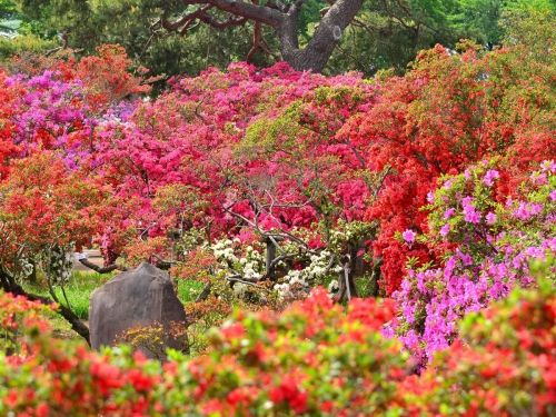 群馬県館林市にある公園で、日本歴史公園100選のひとつに選ばれています。例年4月上旬から1か月ほどつつじ祭りが開催され、多くの見物客や観光客でにぎわうつつじの名所として有名です。また初夏になると公園隣接の城沼に蓮が茂り、遊覧船にも乗れるハスまつりが行われることでも知られています。例年冬にはイルミネーションも開催され、年間通して見どころある公園です。