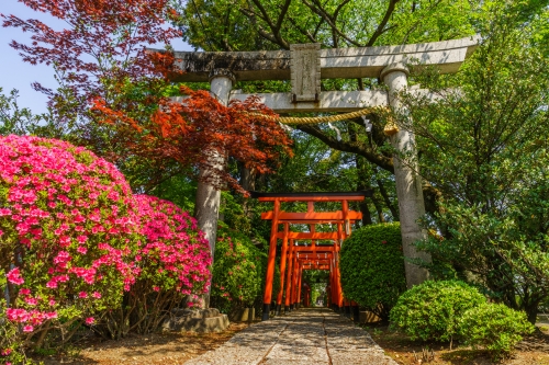 つつじが岡公園の北側にある尾曳(おびき)稲荷神社は「館林城築城者・赤井照光が助けた狐の化身が城の配置を教えてくれた」という「狐の尾曳伝説」が伝わる神社です。かつての館林城を2回も守ったとされています。縁結びや家内安全、商売繁盛、必勝祈願などのご利益があるとされています。