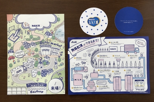 また、試飲会場でもうらうコースターフォトプロップシート以外にカルピス1杯分、絵葉書、エコに関する取り組みについてのパンフレットをお土産にもらえますよ。