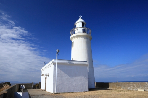 房総半島の最西端に位置する、洲崎に立つ小さな灯台。内部の見学も可能で、階段を使って上まで上がることができます。天気の良い日には美しい夕焼けを、冬場には富士山の姿をハッキリと捉えることができる、絶景ビュースポットです。