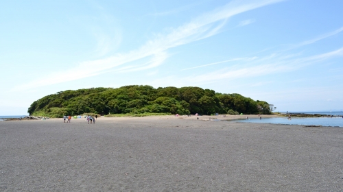 館山市にある陸続きの島で、歩いて上陸することができます。もとは陸地から離れた離島でしたが、関東大震災の影響による地殻変動や、海上自衛隊の館山航空基地建設のために土地が埋め立てられたため、昭和の頃には現在のような陸続きの島となりました。アクアライン経由で都心から車で約2時間とアクセスも抜群です。