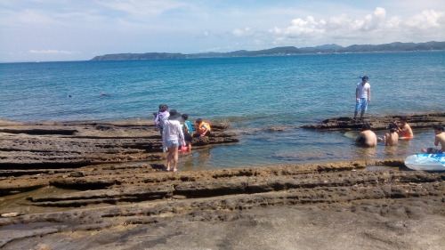 小さいお子さん連れや泳ぎな苦手な方にとっても、沖ノ島には楽しいポイントがたくさん。島の周囲の半分以上を岩礁が占めており、水に入らなくてもカニを捕まえたりハゼなどのお魚を見たりと、磯遊びを満喫できます。