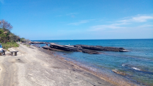 さらに先へ進み、ほどなく見えてくる「宇賀明神」への分かれ道を通り越すと、左手にけもの道を発見。足元がけっこう険しいので、十分に気を付けながら下っていくと・・・目の前に海が開けます!