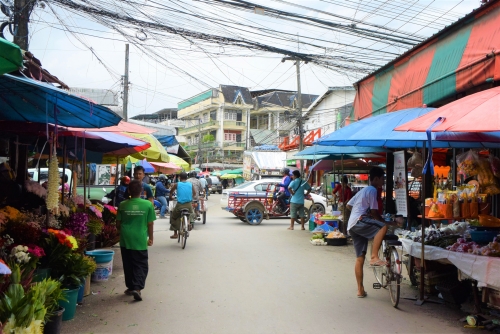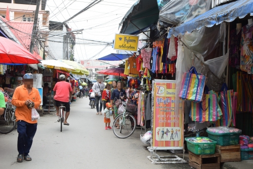 ワット・チュムポンキリーの裏にまっすぐ伸びた道路沿いには、タイ語で「タラート」と呼ばれる市場が開かれています。地元に住んでいる人々だけではなく、ミャンマーから国境を越えて買い物に来るミャンマー人も多く訪れ、ミャンマーの雰囲気も味わえるとても活気がある市場です。