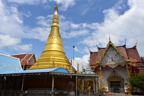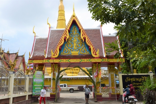 メーソートの町の中心部にある、活気のあるお寺です。それほど大きくないお寺ですが、金色に輝くミャンマー風の仏塔が印象的です。多くのミャンマー人が、お供え物を携えて次から次へと訪れます。