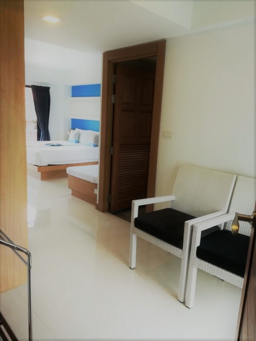 筆者が滞在した時はGW期間だったからなのか、素泊まりで1室999TBH(約3,433円)でした。2019年8月12日時点に同じ部屋をbooking.comで調べたところ、その時には1室3,089円となっていました。こちらは2人で泊まった場合の金額で、1人当たりの負担は1,545円となります。ちなみにスイートルームにはソファベッドもあるので、3人での宿泊も可能です。その際には3人で1室4,290円となり、一人当たり1,430円の負担となります。