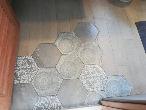 • 写真:藍ai洗面コーナーの床もお洒落な模様