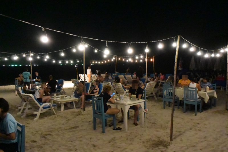ホテルにはレストランはありませんが、夜になると近くの浜辺にレストランが開かれ、海の音を聞きながら食事ができます。