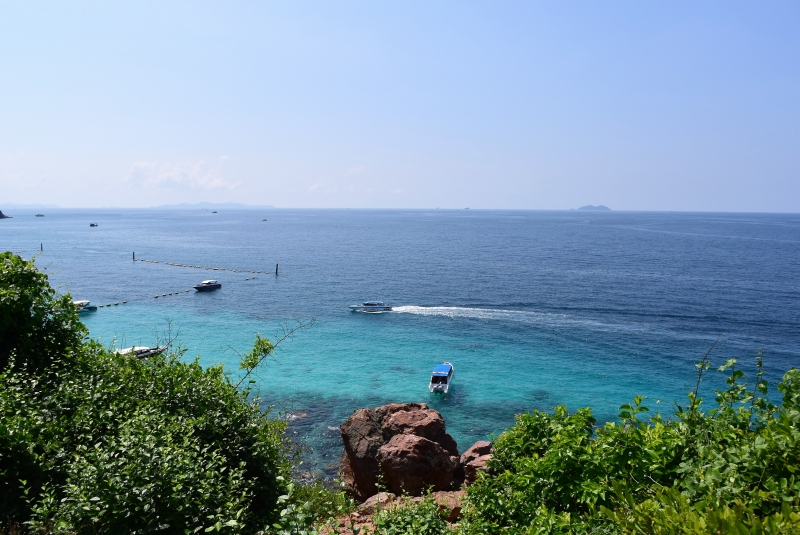 ビーチの端には小高い展望台があり、ビーチやタイランド湾を一望できます。水が透明なので、丘の上からも海の底が見えます。水がとてもきれいなので、船が宙に浮いているように見えます。
