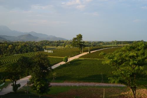 チェンライ市内から車で約1時間。「チョイフォン・ティープランテーション」は、お茶畑に覆われた小高い丘の上にあります。