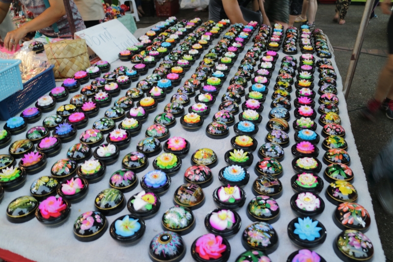 規模はそんなに大きくはないですが、チェンマイにも賑やかでお買い物天国なナイトマーケットが旧市街の城壁の外に3か所ほどあります。駅や宿などで地図が貰えるので、地図を元に移動すると迷いにくいですよ。