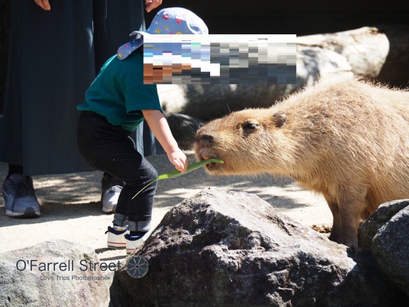 さらにカピバラエリアでは、自由に闊歩するカピバラたちに近づいて餌やりはもちろん、タッチすることもできるのです。エサはすべて有料(¥100~)になっています