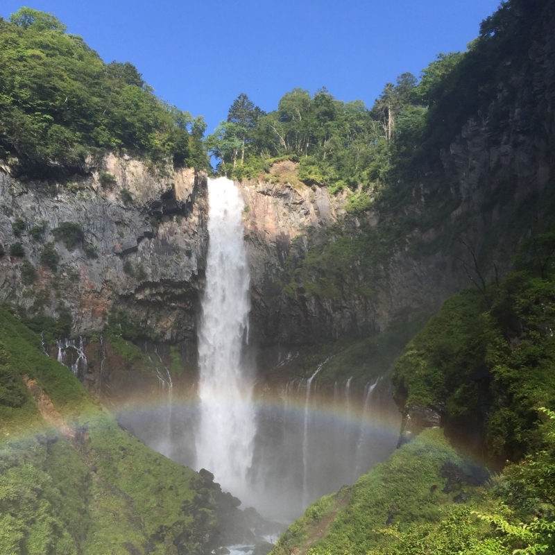 和歌山県の「那智の滝」、茨城県の「袋田の滝」とならんで「日本三名瀑」のひとつに数えられます。48もの滝があると言われる日光周辺で最もよく知られている滝で、中禅寺湖の流出口にあり、高さ97mの岸壁を轟音とともに一気に落下する様は壮大。