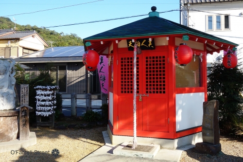 このあとに立ち寄りたいのが、名草厳島(なぐさいつくしま)神社や巨石群。果てしなく山の中に分け入るような参拝となりますが、薄暗い山中に、厳島神社の赤い鳥居が際立っています。
