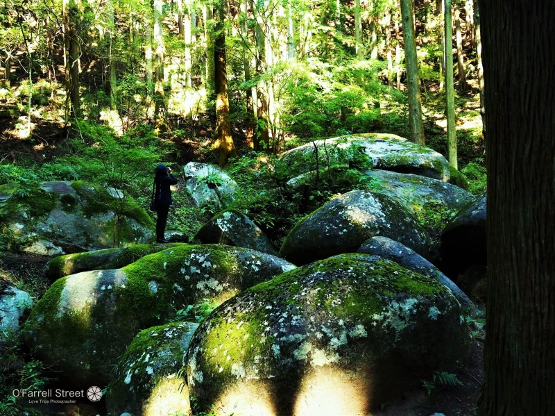 この鳥居の奥に名草巨石群があります。この巨石群は、大きな花崗岩が風化により亀裂が入って割れ、さらに風雨などの侵食で球状に削られたもの。成り立ちが学術的にも貴重とされ、国の天然記念物に指定されています。古くから、神域とされていることもあり、神秘的で少々怖いぐらいの雰囲気です。