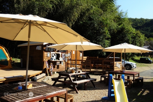 巨岩群で非現実感を満喫したあとは、名草上町の道路沿いにあるログハウスのテラスで、アウトドアなカフェタイムはいかがでしょうか?
