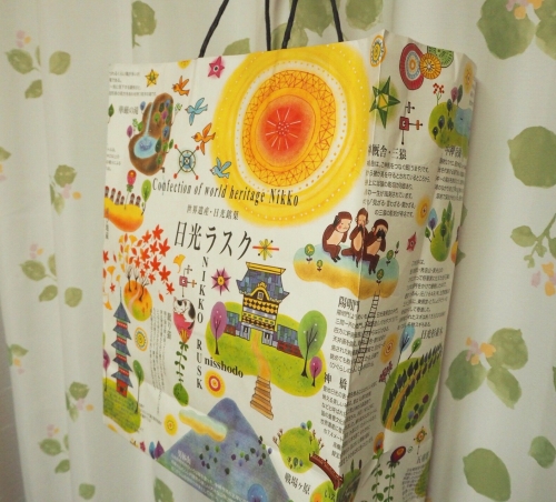 なんといってもパッケージがかわいい!しかもただかわいいだけでなく、イラストはすべて東照宮の三猿像眠り猫など日光の名所を描いていて、小分けの袋は個別にフォーカスしたデザインになっています。日光の紹介にもなり話題づくりにも事欠かない、ご当地みやげというツールにぴったりのビジュアルですよね。2014年にリニューアルされた、読み物としても使える素敵なパッケージです。