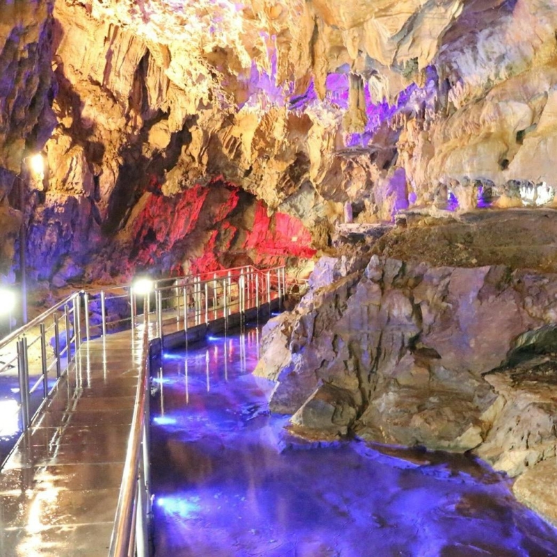 日本全国に約80あると言われる観光鍾乳洞のなかでも、標高900mと日本一高い場所にあります。全長は800mにおよび、洞内は平均気温が12度と一定。夏に訪れるとかなりひんやりと感じられて、絶好の避暑デートスポットです。