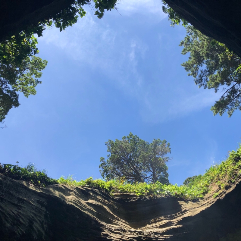 凝灰岩でできている海触洞窟で、天然記念物に指定されています。綺麗なエメラルドグリーンをした海面が、射し込む太陽の光によってキラキラと美しく輝く光景はまさに絶景。