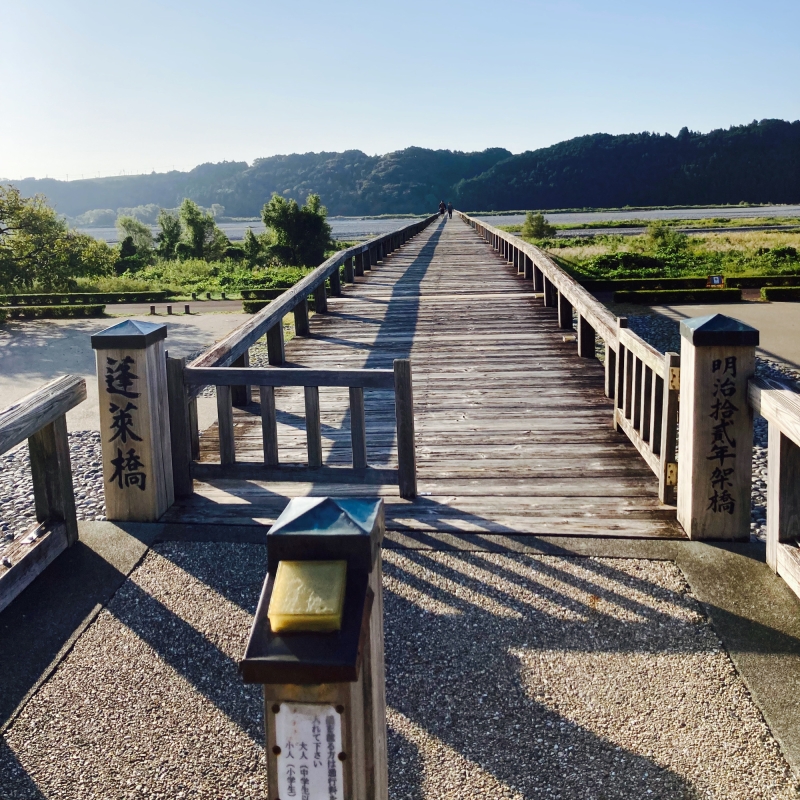 大井川に架けられた、全長897.4m、幅2.4mの木造橋。明治12年(1879年)に完成しましたが、大井川が増水するたびに被害をうけ、昭和40年(1965年)には橋脚をコンクリートにし、現在の姿に。そして平成9年(1997年)に”世界一長い木造歩道橋”としてギネスに認定されました。晴れた日には橋の上から富士山を眺めることができます。
